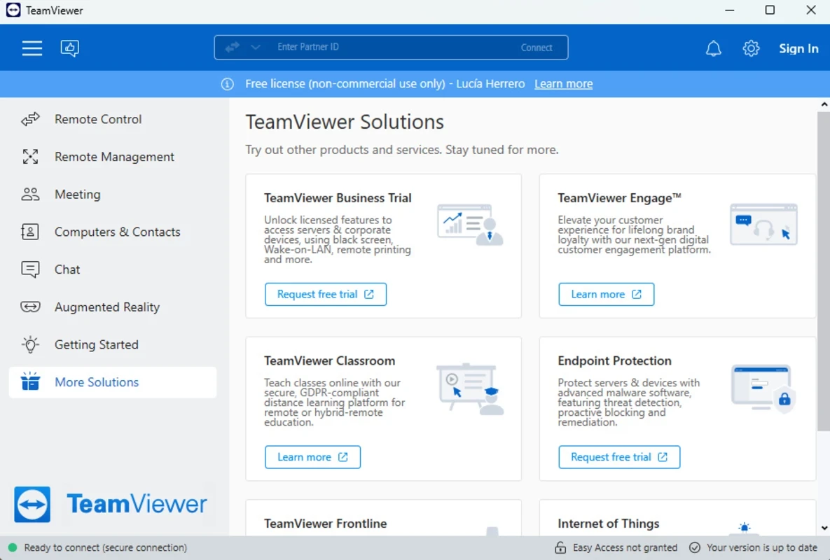 TeamViewerは、場所、デバイス、OSを問わず、高速で信頼性の高い接続を提供する、世界中で人気のソフトウェアの一つです。個人利用だけでなく、商用利用にも便利なソフトウェアです。サブスクリプションプランは、以下の3つのカテゴリーからお選びいただけます。
